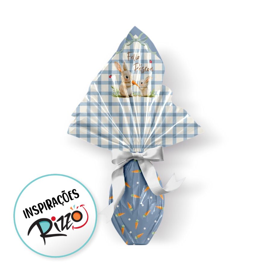 Saco express para ovos de Páscoa com dimensões aproximadas de 44x44cm, indicado para ovos de 500g a 750g. Possui estampa Lovely Garden, na cor azul, sendo utilizado para facilitar a embalagem e valorizar a apresentação de ovos de chocolate.