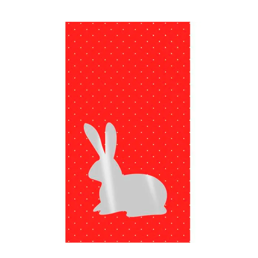 O Saco Transparente Silhueta Vermelho é uma escolha encantadora para embalar presentes ou lembrancinhas, adicionando um toque de delicadeza e elegância. Este saco vermelho é decorado com pontos brancos pontilhados, que criam uma textura visualmente interessante. No centro do saco, uma silhueta de coelho transparente se destaca, acrescentando um elemento de charme e fantasia.