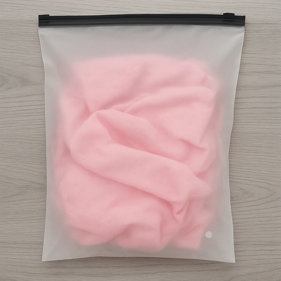 Coloque os itens dentro do saco, deslize o zíper preto até o final e certifique-se de que o fecho esteja bem ajustado. Para reutilizar, basta abrir cuidadosamente e armazenar novamente o que desejar.