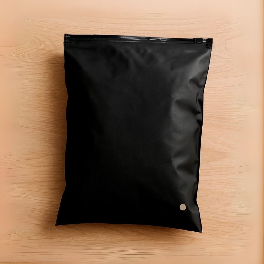 Seu acabamento preto fosco oferece elegância e discrição, enquanto o zíper facilita o uso e o furo possibilita pendurá-lo em expositores. Esse modelo é perfeito para quem busca unir funcionalidade e design em embalagens de qualidade.