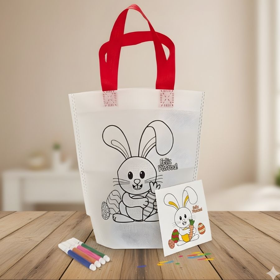 Perfeita para quem busca unir atividade educativa e utilidade em um único produto, a sacola de microfibra para colorir ajuda a resolver a necessidade de lembrancinhas diferenciadas e interativas para a Páscoa. Ela estimula a criatividade, a coordenação motora e o envolvimento das crianças com a temática, sendo uma excelente escolha para professores, pais e organizadores que desejam oferecer uma experiência lúdica e memorável.