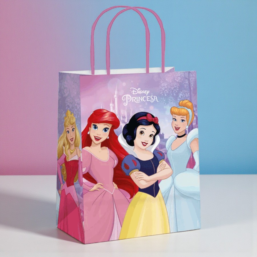 Sacola de papel com estampa inspirada em Princesas Disney