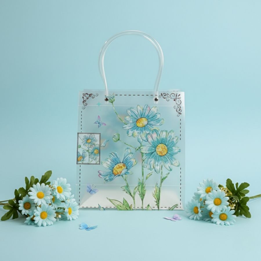 A Sacola de Plástico Transparente em PP com estampa floral de margaridas é uma embalagem prática e delicada, ideal para presentear, organizar e transportar produtos com um visual leve e alegre. Produzida em plástico PP transparente, possui dimensões de 22x10x24 cm, oferecendo espaço adequado para diferentes tipos de itens. Sem forro, é indicada para uso funcional e comercial, atendendo lojas, ateliês, artesãos e pequenos produtores que buscam uma embalagem versátil e com apelo visual natural.