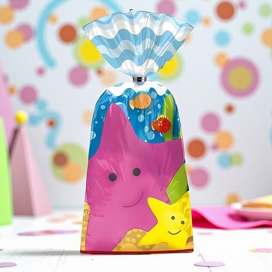 A Sacola Surpresa Fundo do Mar 8 unidades é divertida, prática e ideal para lembrancinhas, doces e brindes em festas infantis temáticas.