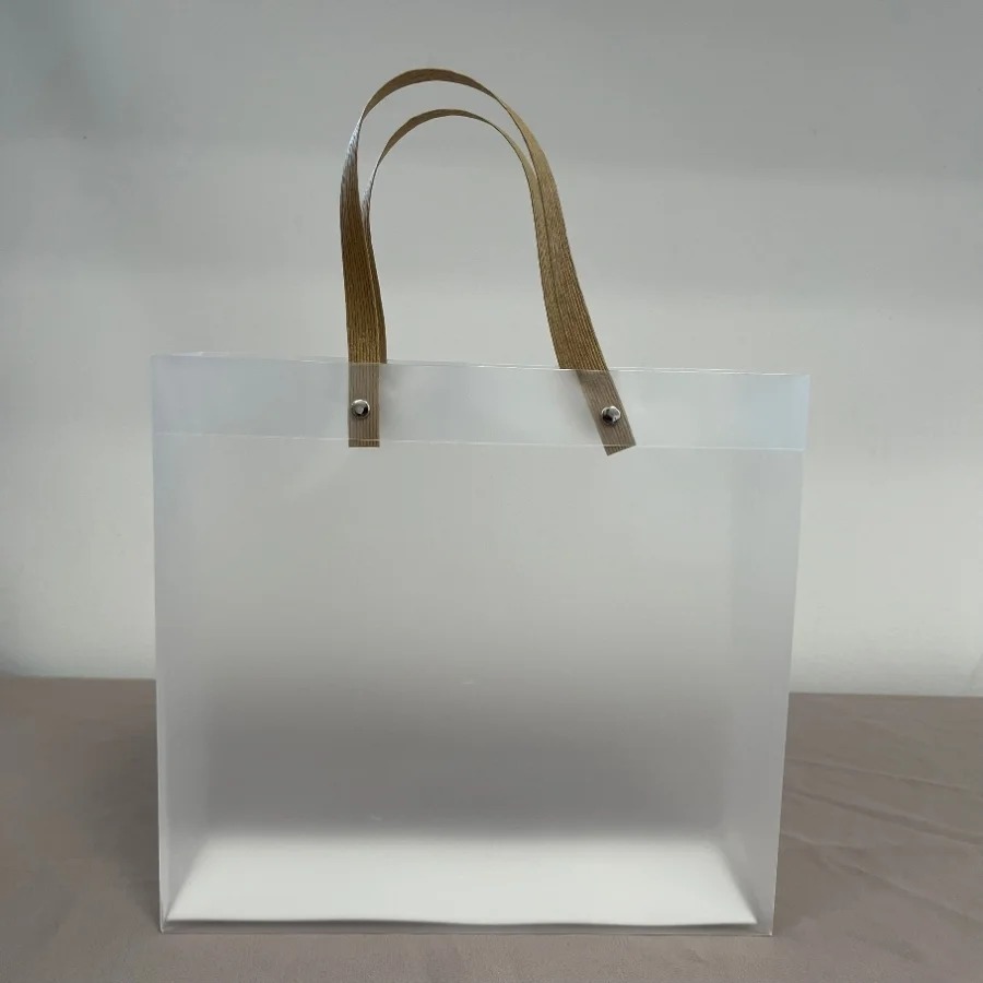 A Sacola Transparente Fosca com Alça de Fibra 24x26x8cm é prática, resistente e estilosa, ideal para transportar itens com segurança e charme.