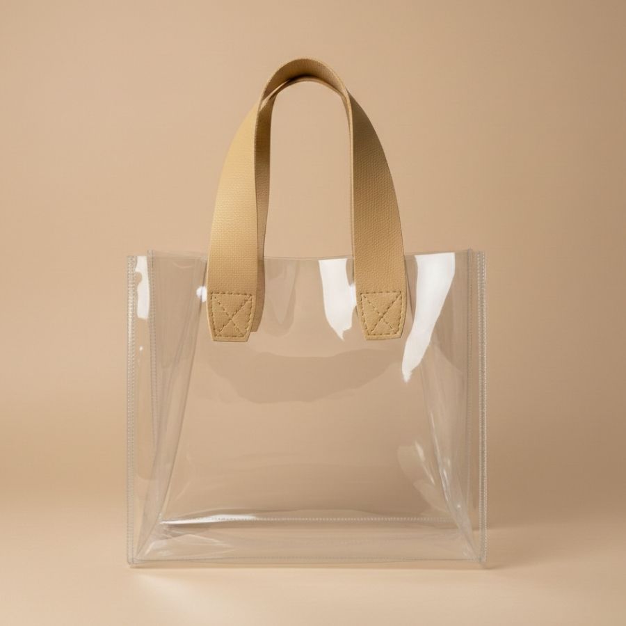 A Sacola Transparente em PVC com alça de couro sintético PU é uma embalagem resistente e elegante, ideal para presentear, organizar e transportar produtos com excelente apresentação. Produzida em plástico PVC transparente, com alça bege escuro em PU, possui dimensões de 25x14x23 cm, oferecendo maior capacidade interna e praticidade no uso. Sem forro interno, é indicada para uso prolongado, atendendo lojas, ateliês, marcas artesanais e pequenos produtores que buscam uma embalagem moderna, robusta e valorizada.