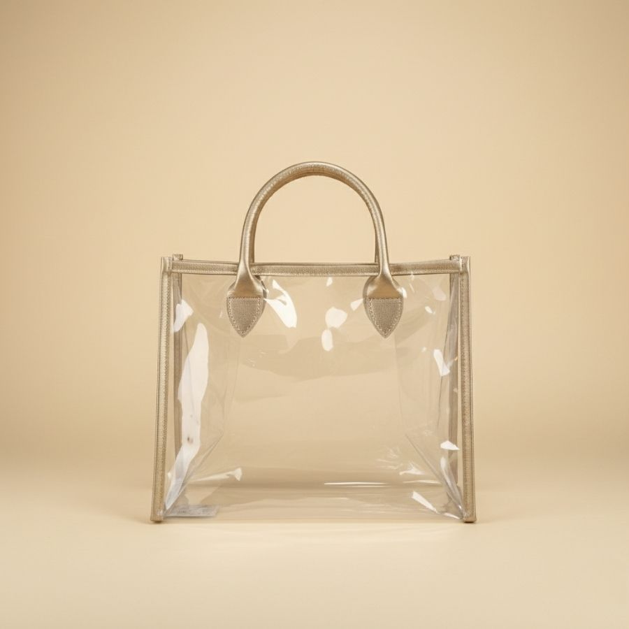 O grande diferencial desta sacola está na estrutura reforçada aliada ao design transparente, que valoriza o conteúdo interno e facilita a composição de kits e presentes. A alça em PU dourado acrescenta um toque premium ao visual, elevando a percepção de valor do produto final. Sua versatilidade permite aplicações em embalagens presenteáveis, brindes corporativos, produtos personalizados e organização, sendo uma excelente escolha para quem deseja unir funcionalidade, estética e durabilidade.