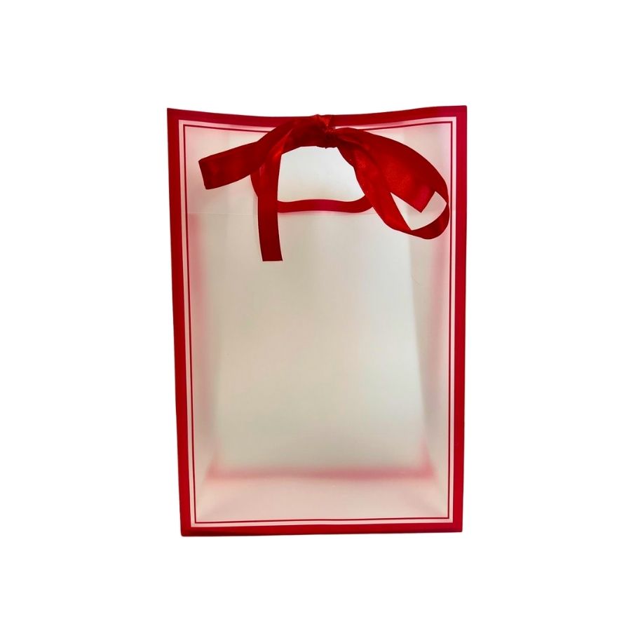 A Sacola Transparente PVC com Alça e Fita - Vermelha - 35x24x10cm é a escolha perfeita para quem deseja unir praticidade e sofisticação. Confeccionada em PVC transparente, permite visualizar facilmente o conteúdo interno, enquanto o acabamento em vermelho com fita decorativa adiciona um toque de charme e elegância. Ideal para presentes, eventos ou uso no dia a dia.