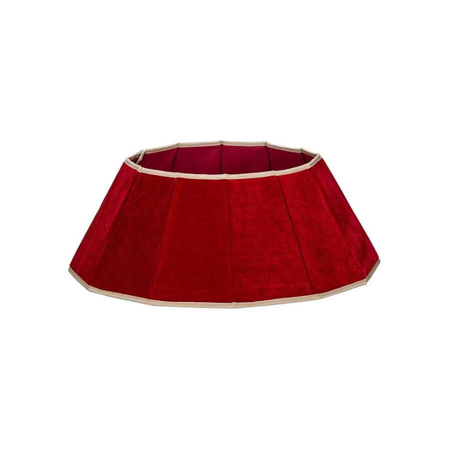 A Saia Para Árvore de Natal em veludo vermelho e ouro traz um toque de elegância e sofisticação à sua decoração natalina. Com 68 cm de diâmetro, é ideal para árvores de menor porte, proporcionando um acabamento luxuoso e acolhedor.
