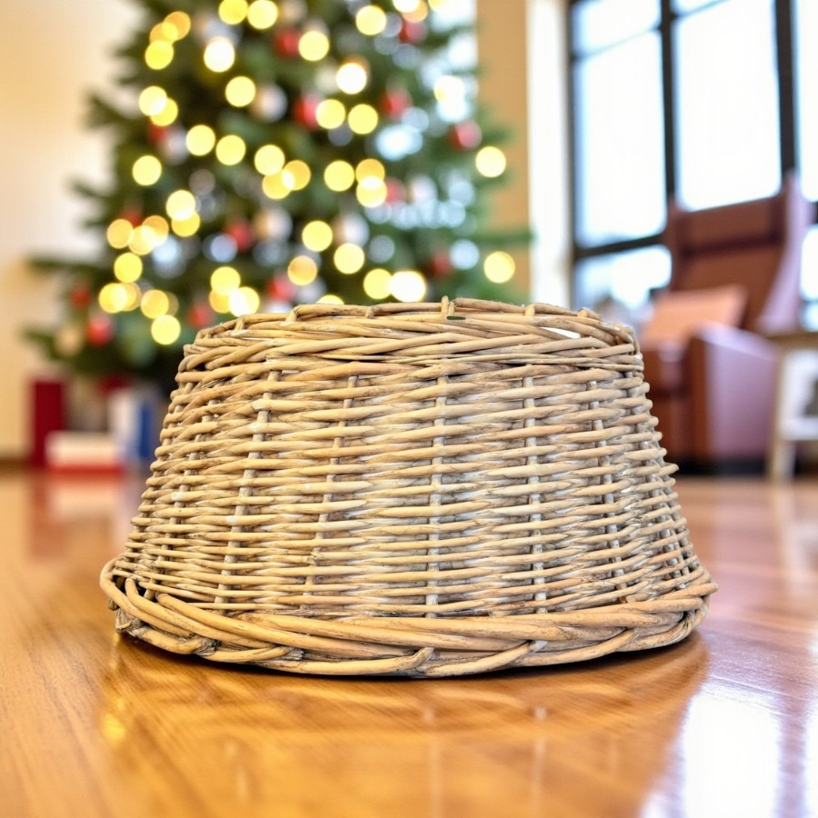 Perfeita para complementar árvores de Natal de diferentes tamanhos, a saia de rattan combina com decorações clássicas, modernas ou temáticas. Ela valoriza a mesa de presentes e cria um efeito visual harmonioso, sendo ideal para quem deseja uma decoração natalina detalhada e organizada.