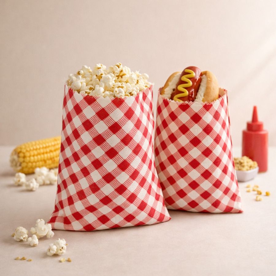 Saquinho para pipoca e hot dog de tecido de chita. Obs: o produto pode conter pequenas variações de tamanho, dependendo do lote.