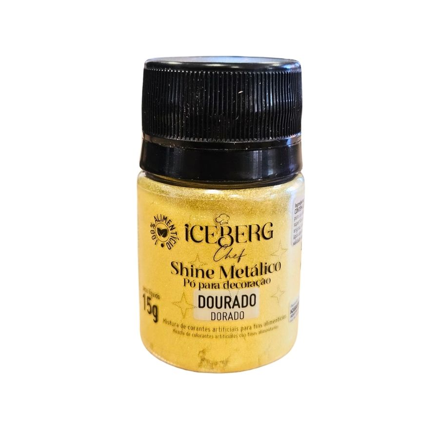 O Shine Metálico na cor Dourado é um pó com acabamento metálico intenso, ideal para dar um toque luxuoso e sofisticado à decoração de doces. Com embalagem de 15g, é perfeito para confeiteiros que buscam elegância nos detalhes.