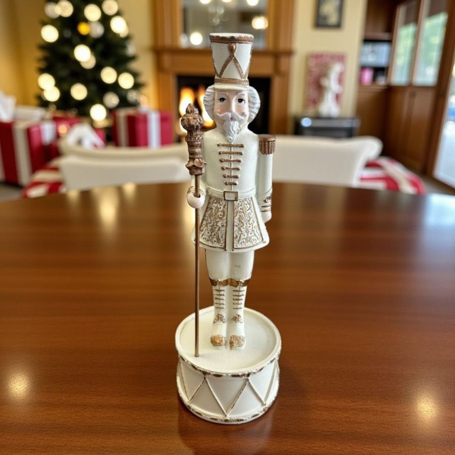 O Soldado de Chumbo em Resina com Mastro Branco 38cm é um enfeite elegante e tradicional, perfeito para criar uma decoração natalina clássica, delicada e cheia de charme.