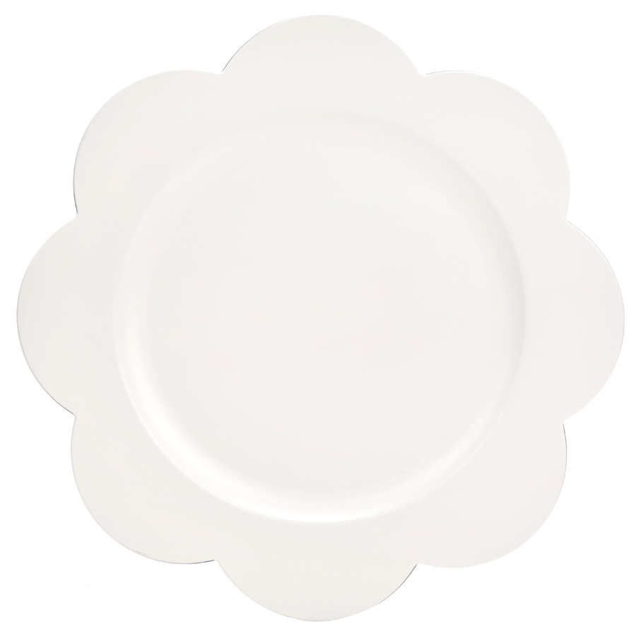 Sousplat branco com borda em formato floral com base na cor preta