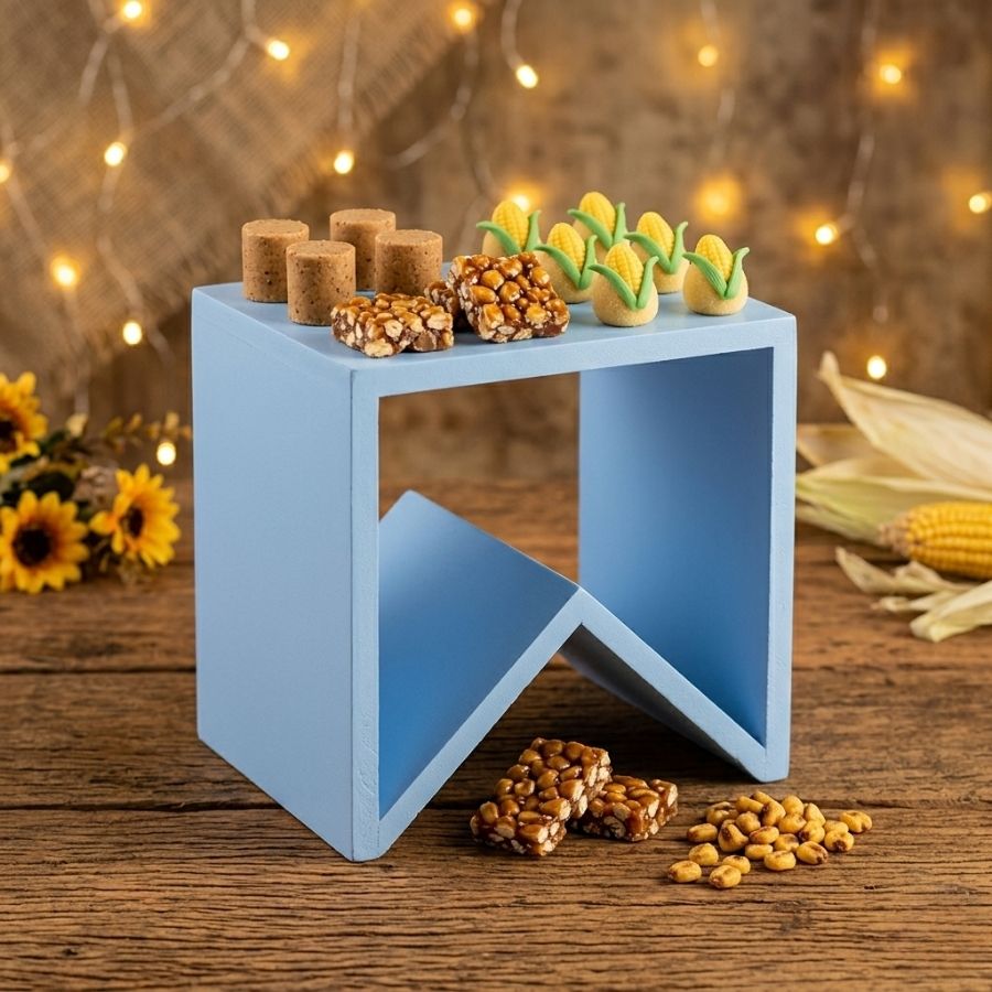 Produzido em madeira de qualidade, possui aproximadamente 15,5x16 cm, sendo resistente e reutilizável. Seu tom em azul bebê proporciona um visual suave e harmonioso, combinando facilmente com diferentes estilos de decoração. Ideal para festas juninas, aniversários temáticos e mesas decorativas, é uma peça versátil que une praticidade e charme em qualquer ocasião.