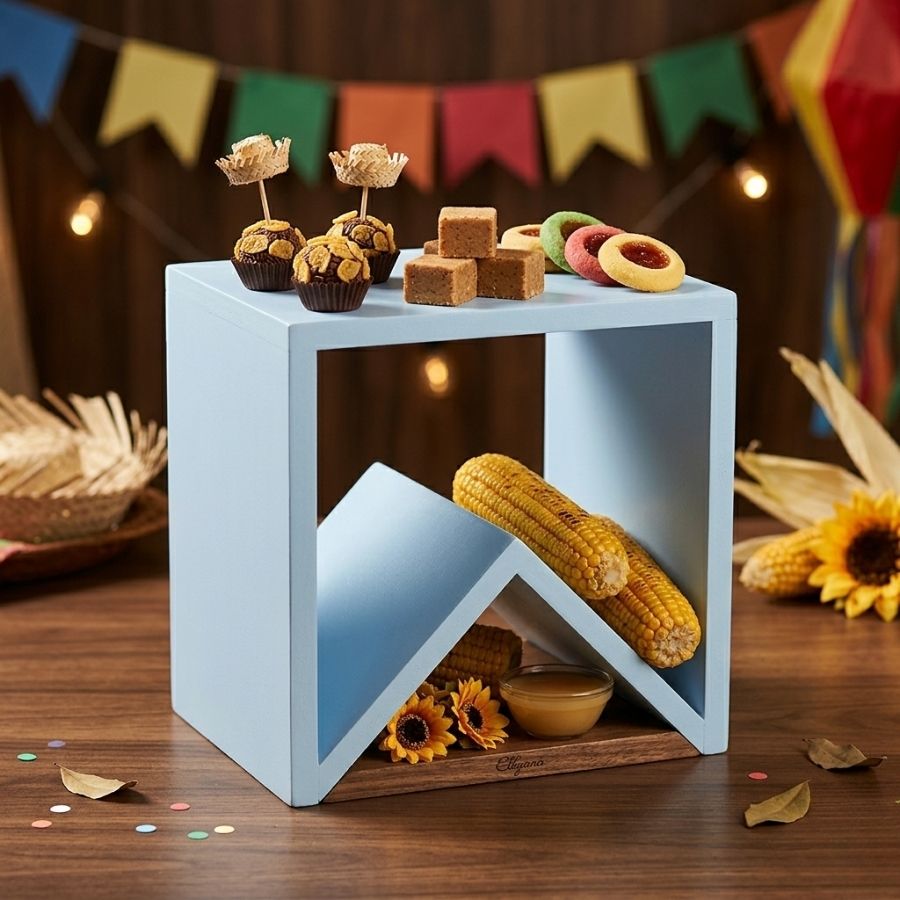 Produzido em madeira, possui aproximadamente 16,3x16 cm, sendo resistente e perfeito para compor mesas decorativas com estilo. Versátil, pode ser utilizado em festas juninas, aniversários temáticos, chás e eventos especiais, valorizando cada detalhe da decoração. Uma peça reutilizável que une funcionalidade e estética, ideal para quem busca uma apresentação criativa e bem elaborada.