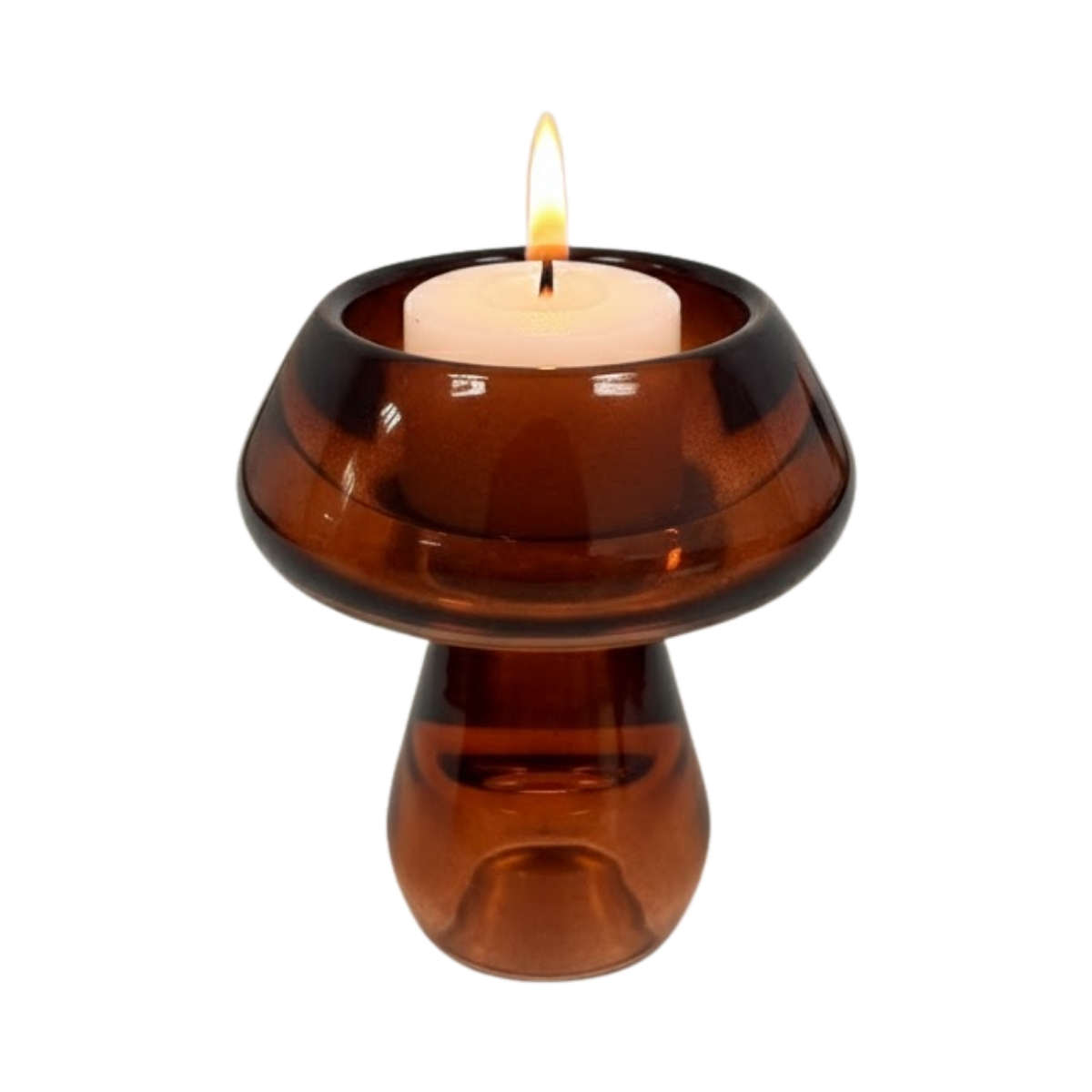 O Suporte Para Vela - Cogumelo Rosa é um charme à parte na decoração. Produzido em vidro de alta qualidade, apresenta formato de cogumelo com base translúcida e cúpula na cor rosa, que cria um efeito de luz suave e acolhedor quando a vela é acesa. É uma peça delicada e versátil, perfeita para decorar ambientes, criar composições românticas ou adicionar um toque de cor e estilo à sua mesa.