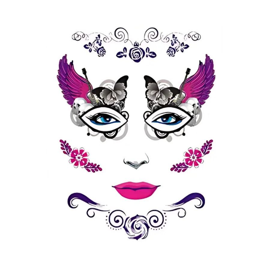 A Tatuagem Temporária Para Pele - Rosto é perfeita para complementar fantasias e criar maquiagens artísticas de forma prática e rápida. Desenvolvida para aplicação no rosto, ela garante um visual impactante e criativo, ideal para festas temáticas, Halloween e outros eventos especiais.