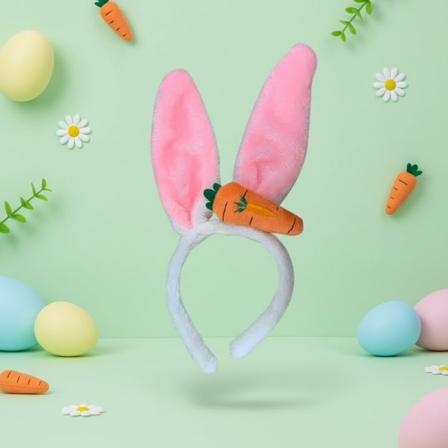 Tiara de Orelha de Coelho de Páscoa - Branco com Rosa - 29x12cm - 1 unidade - Rizzo