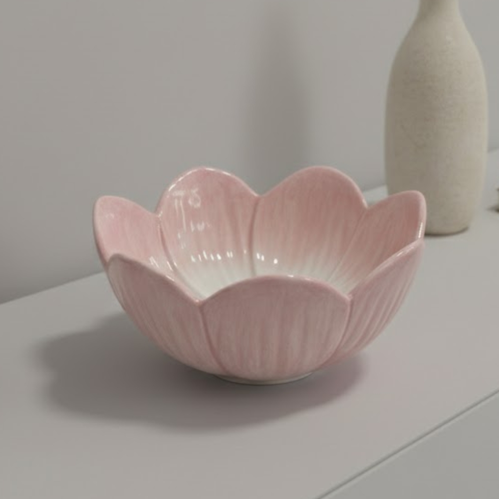 Delicada e elegante, a tigela de cerâmica Flor Rosa encanta pelo seu design diferenciado e cheio de charme. Com formato de flor, a peça traz um visual romântico e sofisticado, ideal para compor mesas decoradas com leveza e personalidade. O tom rosa suave valoriza ainda mais o acabamento, tornando a tigela um destaque na decoração.