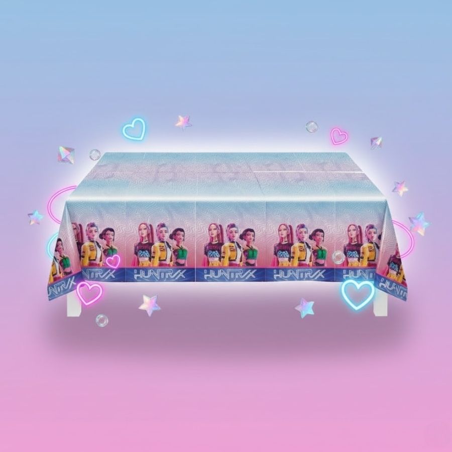 Toalha plástica temática Guerreiras do K-pop, perfeita para decorar mesas e criar um visual vibrante e moderno na festa.