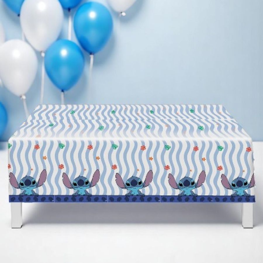 A Toalha Plástica - Stitch New mede 1,80m x 1,20m e é ideal para decorar a mesa principal da festa Stitch, seja na mesa do bolo ou na mesa dos convidados. Com estampa licenciada Disney, traz cores vibrantes e figuras do Stitch impressas em alta resolução, deixando a decoração ainda mais encantadora.