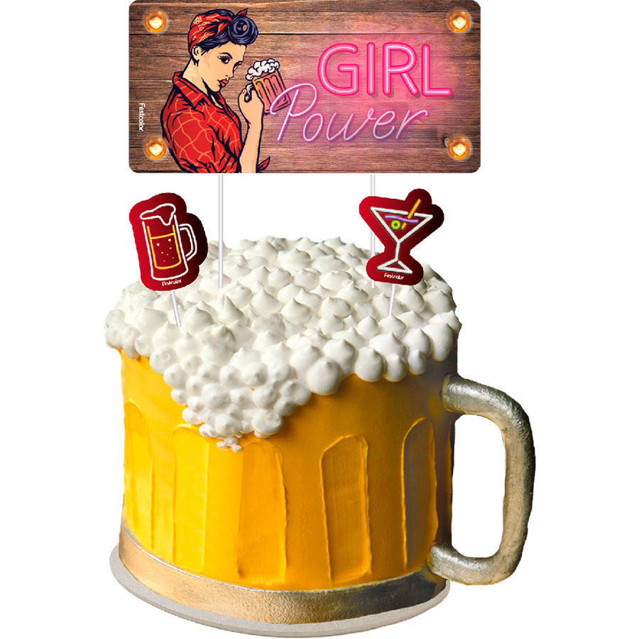 Um pacote contendo 4 unidades de topo para bolo com o tema Boteco Delas