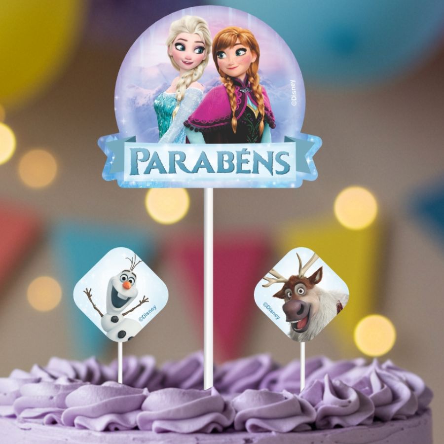 Kit com três peças para topo de bolo inspirado em Frozen Disney