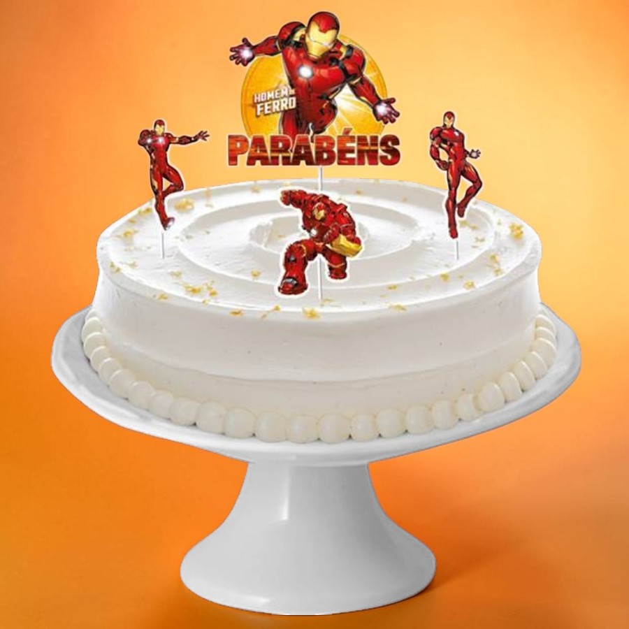 O Topo de Bolo - Homem de Ferro Disney - Disney Original é um item decorativo pensado para destacar o bolo principal com um visual marcante e temático. Inspirado no universo do Homem de Ferro Disney, o conjunto é composto por uma figura principal com 13cm de largura e mais 3 figuras complementares com aproximadamente 11cm de altura cada, formando uma composição equilibrada e cheia de presença. As peças são impressas em papel cartão em alta resolução e coloridas somente na parte frontal, criando um efeito visual direcionado para a frente da mesa. Acompanha palito plástico para fixação, facilitando a aplicação tanto no bolo quanto em doces decorados, permitindo montar uma apresentação organizada e alinhada ao tema da festa.