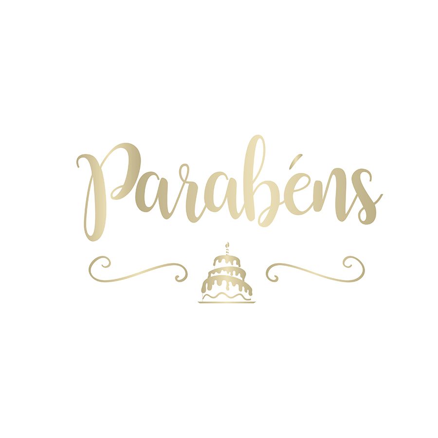 Transfer para Balão Lettering Ouro - Parabéns Bolo - 01 Unidade - Cromus Baloons - Rizzo Balões