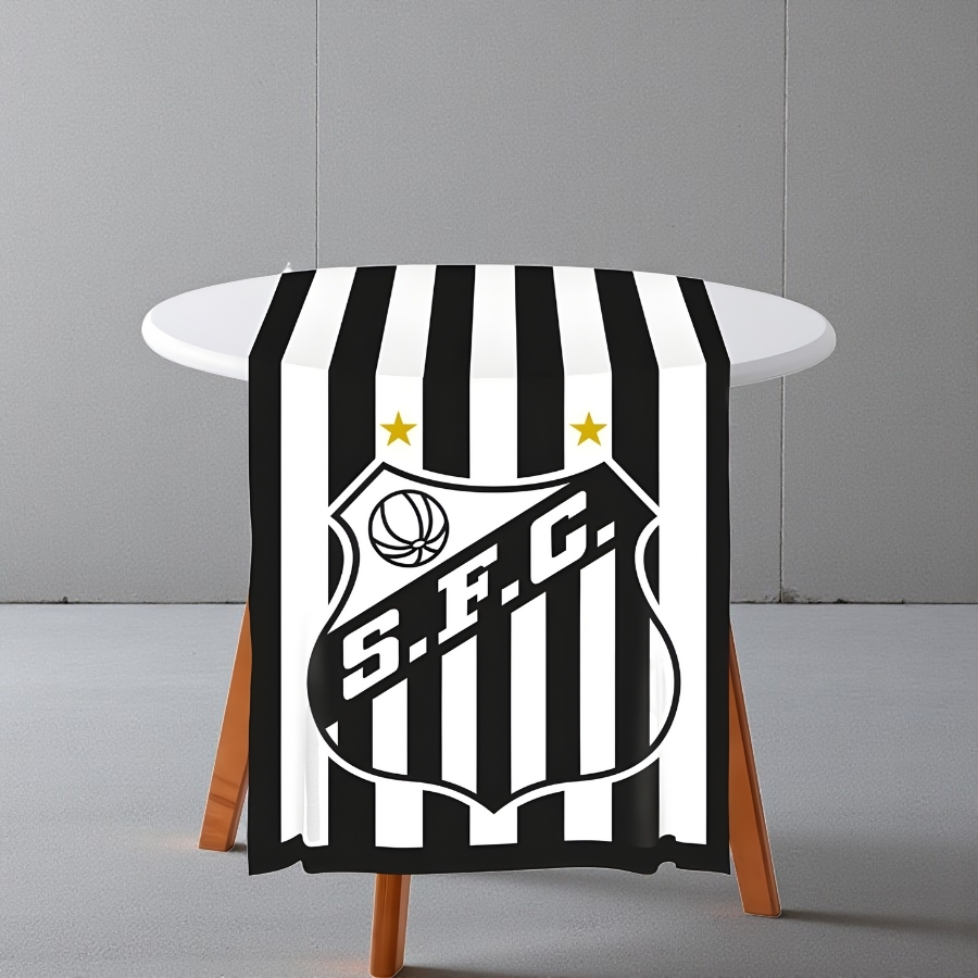 Trilho de mesa com tema Santos, dimensões 40x200cm. Leve, resistente e fácil de posicionar, ideal para festas, eventos e comemorações de torcedores, proporcionando praticidade e decoração temática de qualidade.
