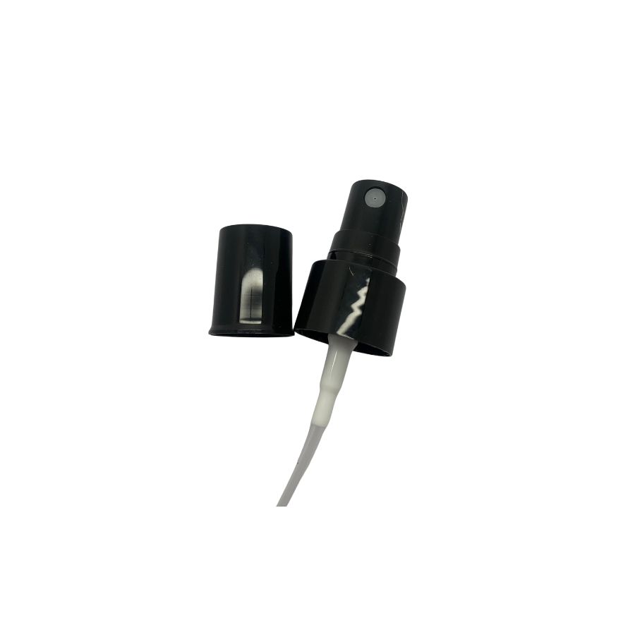 Válvula spray preta lisa, rosca 20/410, tubo de 20cm. Ideal para frascos de 120ml a 200ml com perfumes, essências e aromatizadores.
