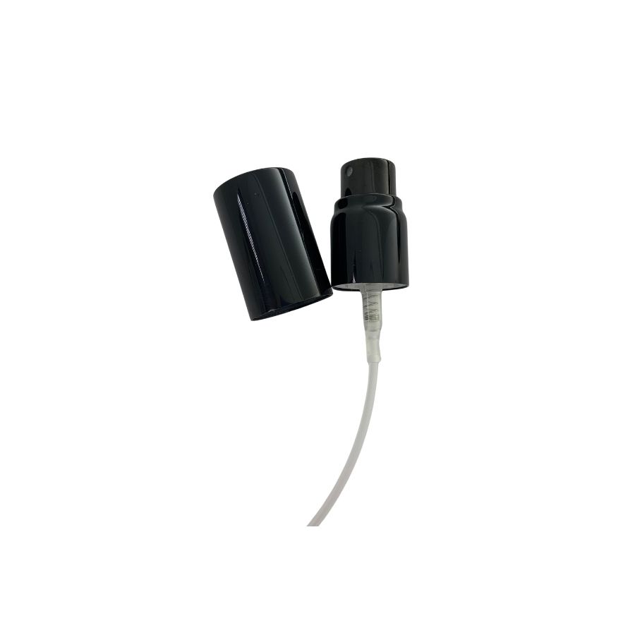 Válvula spray preta piano, rosca 18, com tubo de 15cm. Ideal para frascos de 60ml a 120ml com essências e perfumes.