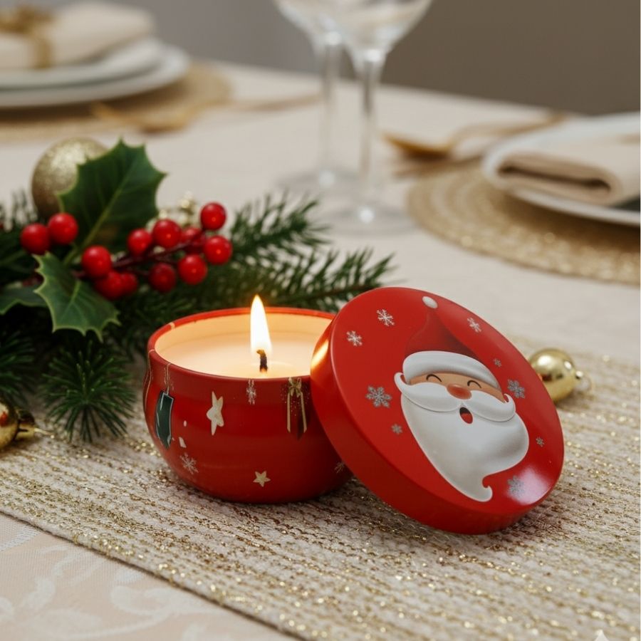 Esta vela se destaca pelo acabamento seguro e pelo pavio central, que garante queima uniforme e segura. A lata protege a cera e mantém o aroma natalino preservado por mais tempo, tornando a vela versátil para diferentes aplicações. Pode ser combinada com essências aromáticas, bases de velas e acessórios decorativos, sendo ideal para presentear, criar centros de mesa ou composições temáticas que valorizam o clima festivo.