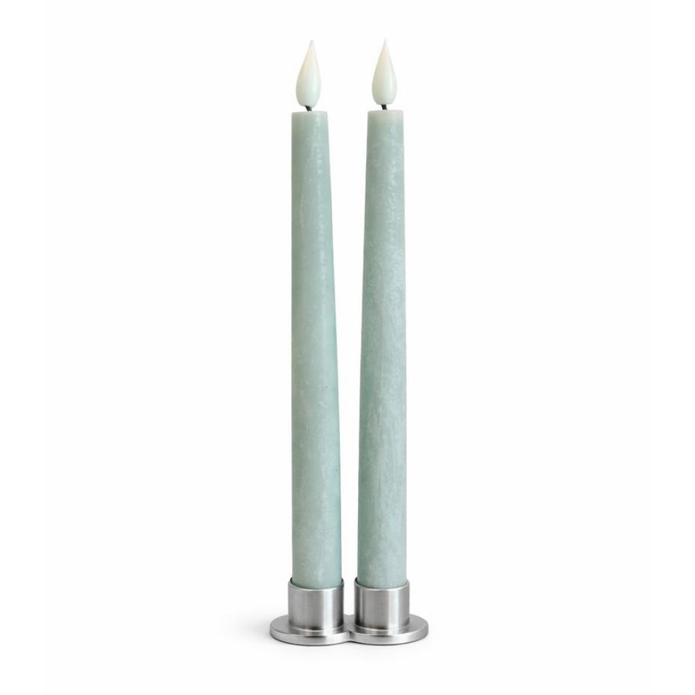 Este kit contém 2 velas com iluminação em LED, criando um efeito de chama suave sem o uso de fogo, garantindo mais segurança no uso diário. Para utilizar, é necessário desrosquear a parte inferior da vela para inserir ou remover as baterias; o botão liga/desliga também fica localizado na base. As baterias não estão inclusas.
