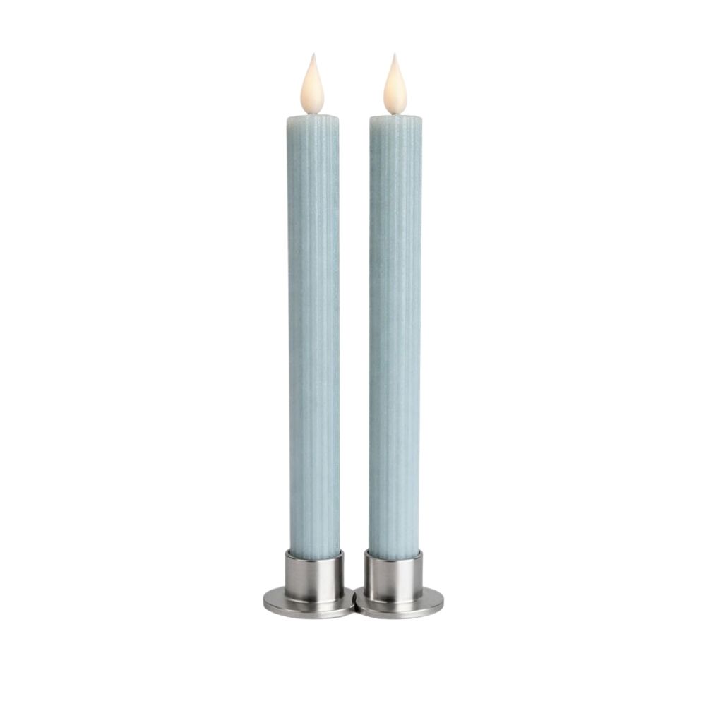 A Vela Eletrônica de LED em tom azul pastel é perfeita para criar uma atmosfera aconchegante e sofisticada sem o uso de fogo. Com design alto e acabamento texturizado em ondas, ela foge do formato cilíndrico liso tradicional, trazendo mais elegância e destaque para a decoração. Ideal para composições modernas, românticas ou minimalistas, valoriza mesas, aparadores, prateleiras e eventos especiais.