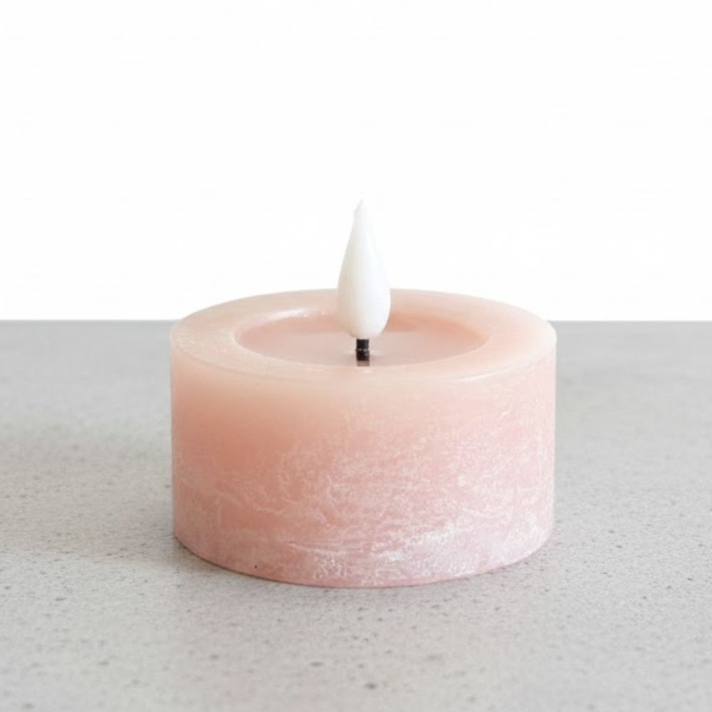 A Vela Eletrônica de LED na cor rosa pastel é perfeita para quem busca uma decoração delicada e aconchegante. Com formato baixo e largo, ela se diferencia das velas altas tradicionais, trazendo um visual moderno e suave que combina facilmente com mesas postas, bandejas decorativas, aparadores e composições românticas ou minimalistas.