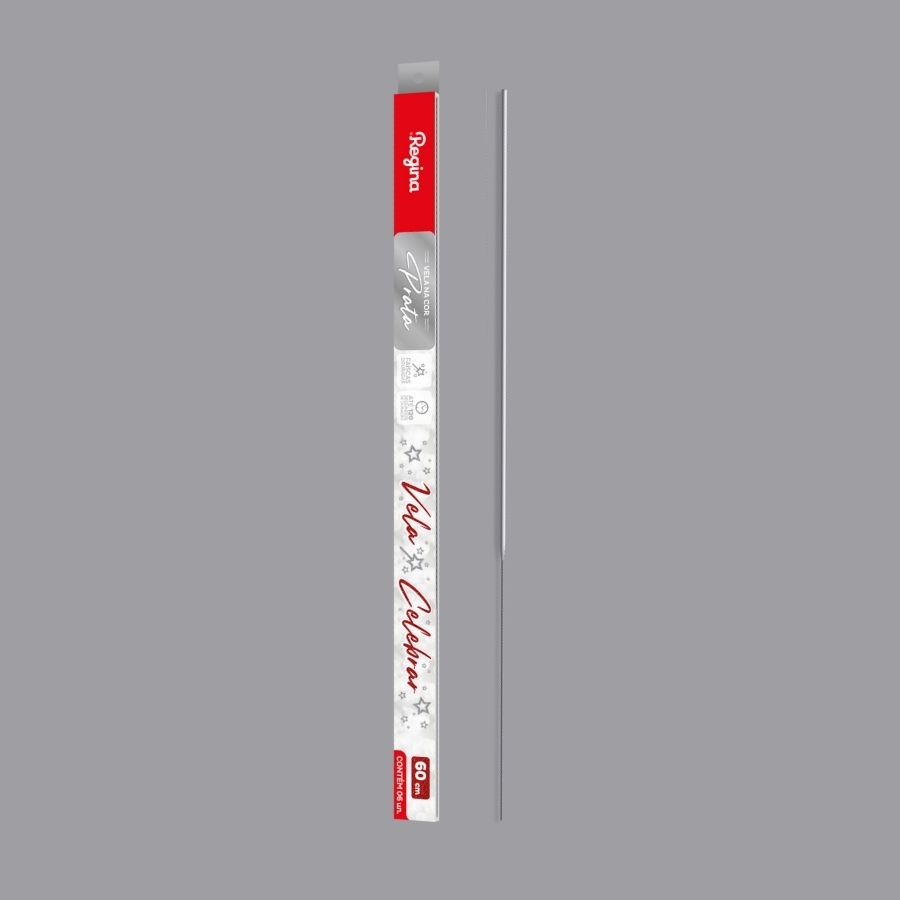 Vela sparkler prata 60cm com faíscas intensas e efeito prolongado para festas e eventos especiais.
